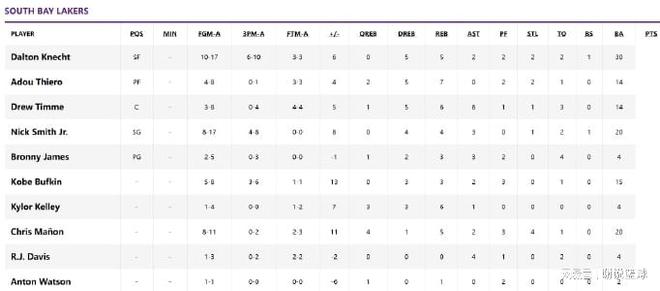 湖人小号赢下德比战,克内克特首秀成最佳,布朗尼发挥较差